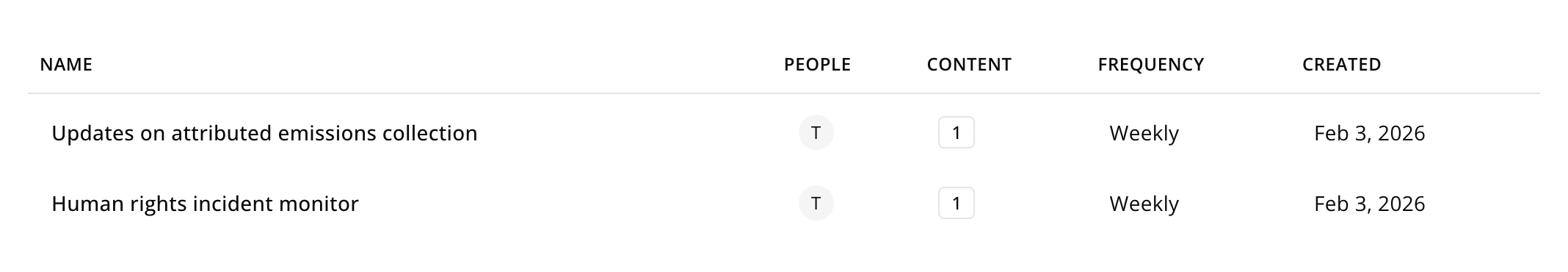 Setup digests for different topics, supplier segments, or purposes. You can inform leadership on a monthly basis, or the team on a weekly basis. Our email digests are built modularly so you can setup as many digests as you like.