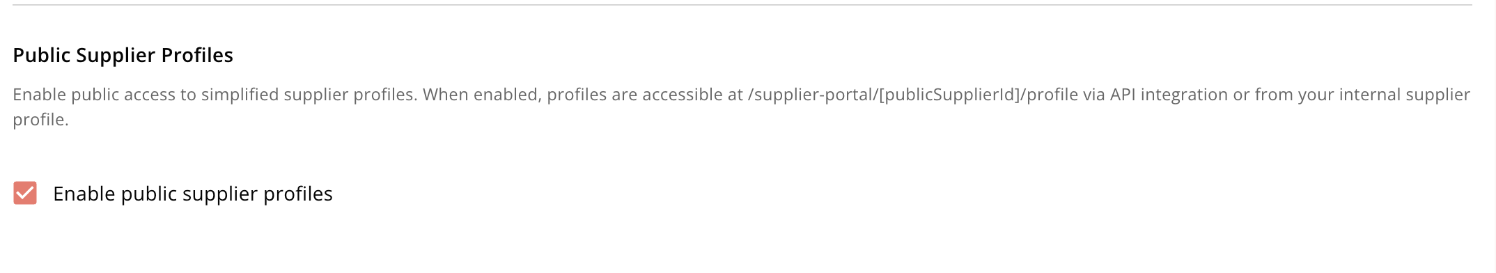Public supplier profiles are disabled as a default. To enable them, go to Settings → General settings